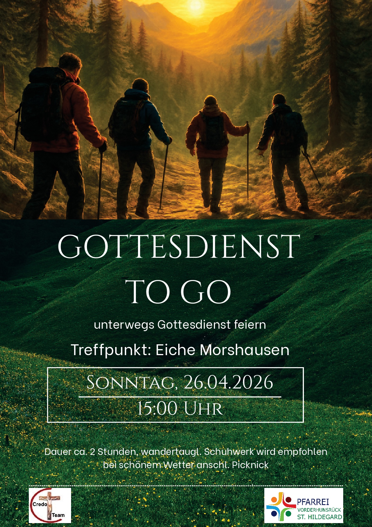 Am 26. April treffen wir uns um 15 Uhr an der Eiche in Morshausen, festes Schuhwerk ist für unseren zweistündigen Wandergottesdienst von Vorteil. Wir freuen uns auf rege Beteiligung!